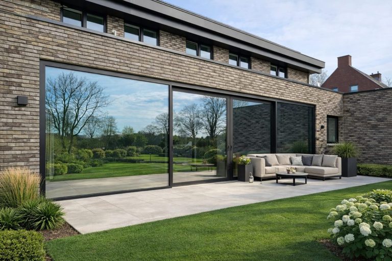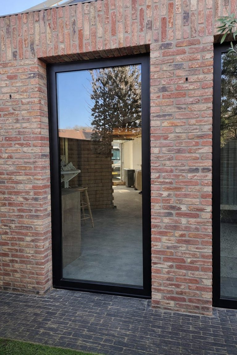 Voor deze woning hebben we een hoogwaardige aluminium schuifpui geplaatst, voorzien van HR++ zonwerende beglazing. Deze beglazing houdt de warmte buiten terwijl het daglicht ruim binnenvalt – ideaal voor comfort in alle seizoenen.